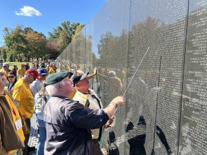 For Denny, and his brother, the trip was more than a simple flight to Washington, D.C. It was a deeply personal pilgrimage. The Honor Flight program takes veterans to visit the memorials built in their honor, including the Vietnam Veterans Memorial, where Denny found himself face-to-face with names etched in black granite—friends and comrades he once fought beside.